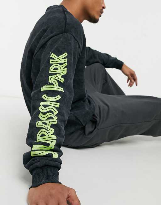 ASOS DESIGN oversized sweatshirt in washed black with Jurassic Park print